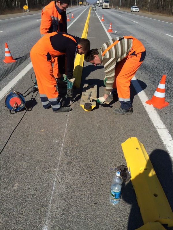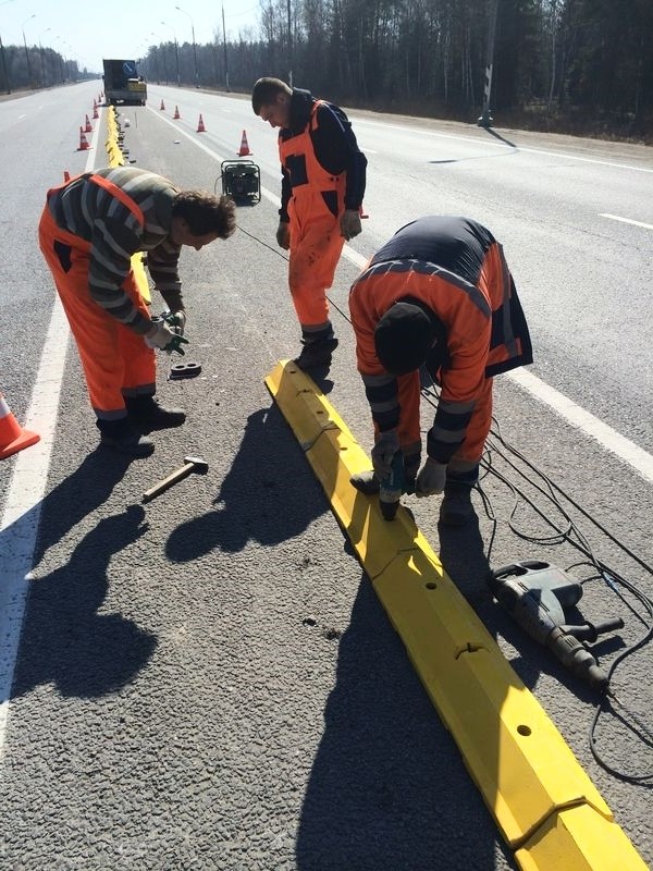 Комплексная услуга по установке приобретенных вами резиновых или композитных (песок+полимер) делиниаторов включает в себя: