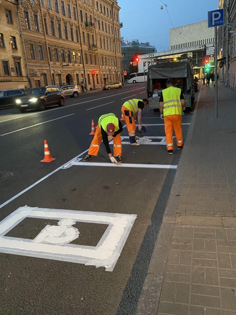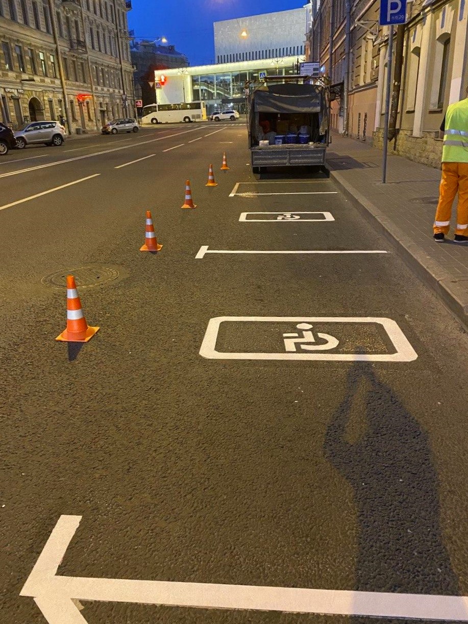 нанесение дорожных пиктограмм по трафаретам “места для инвалидов” в соответствии с ГОСТ Р 1256-2018