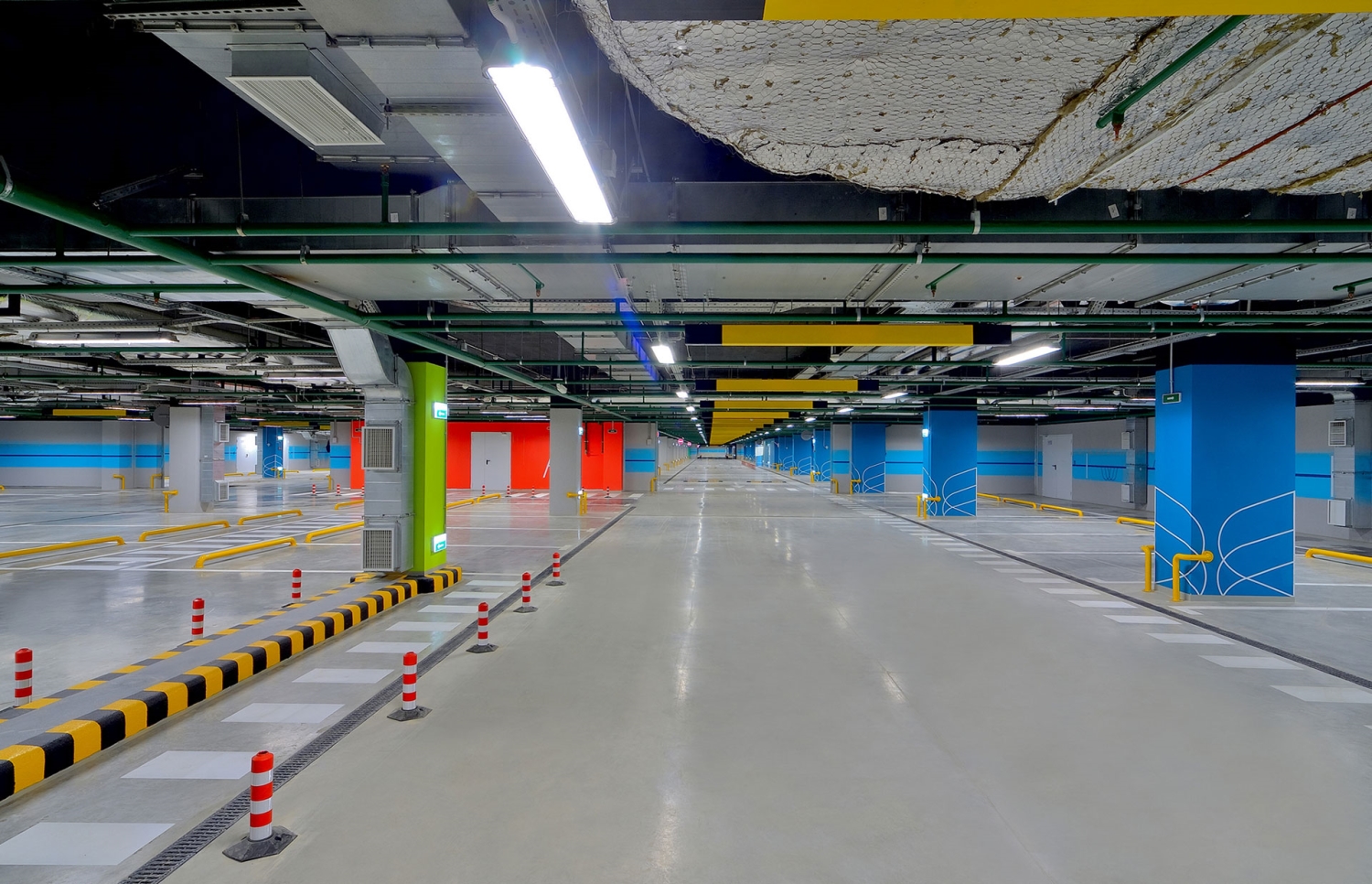 нанесение предупреждающих символов на стены, колонны